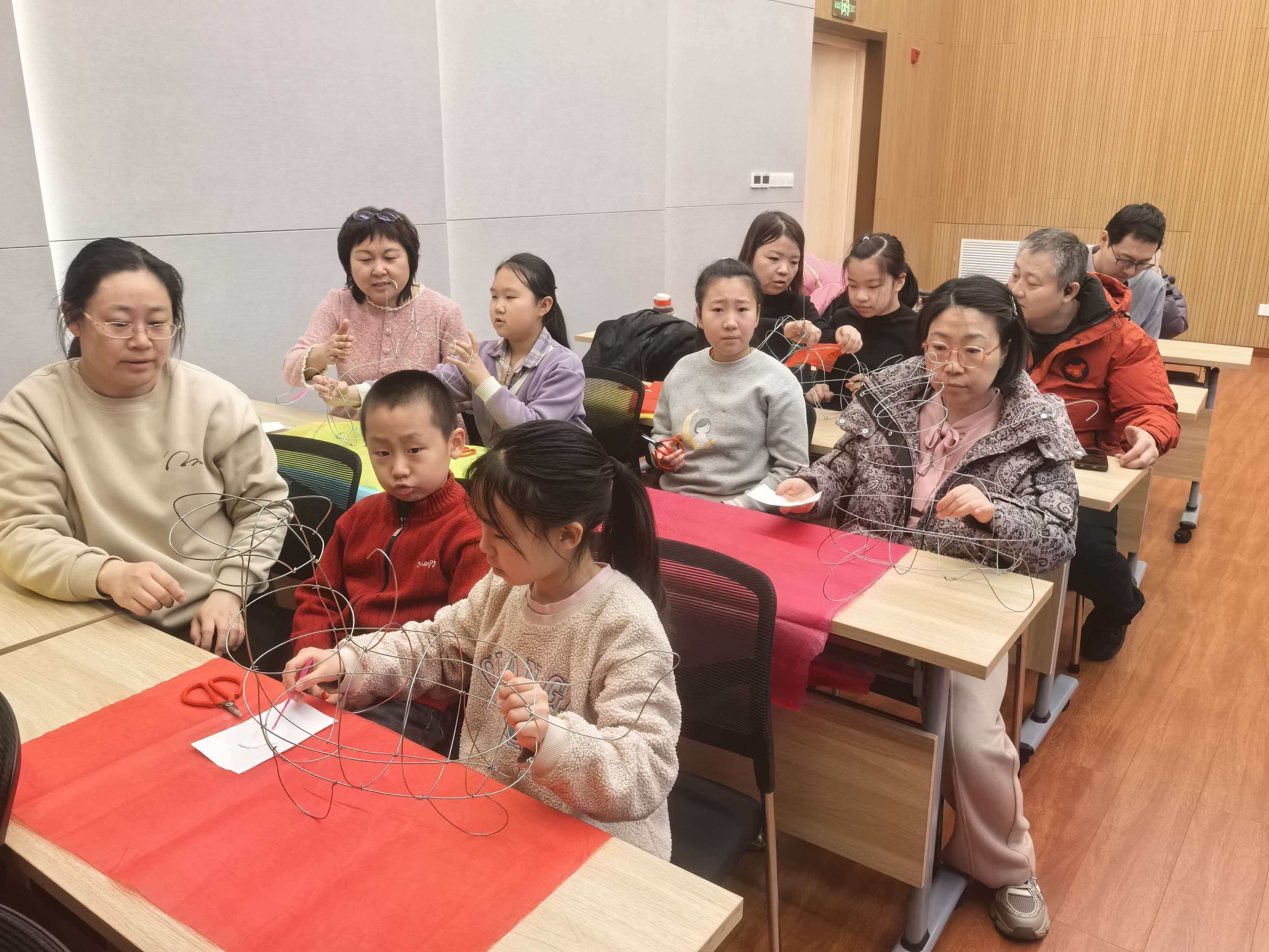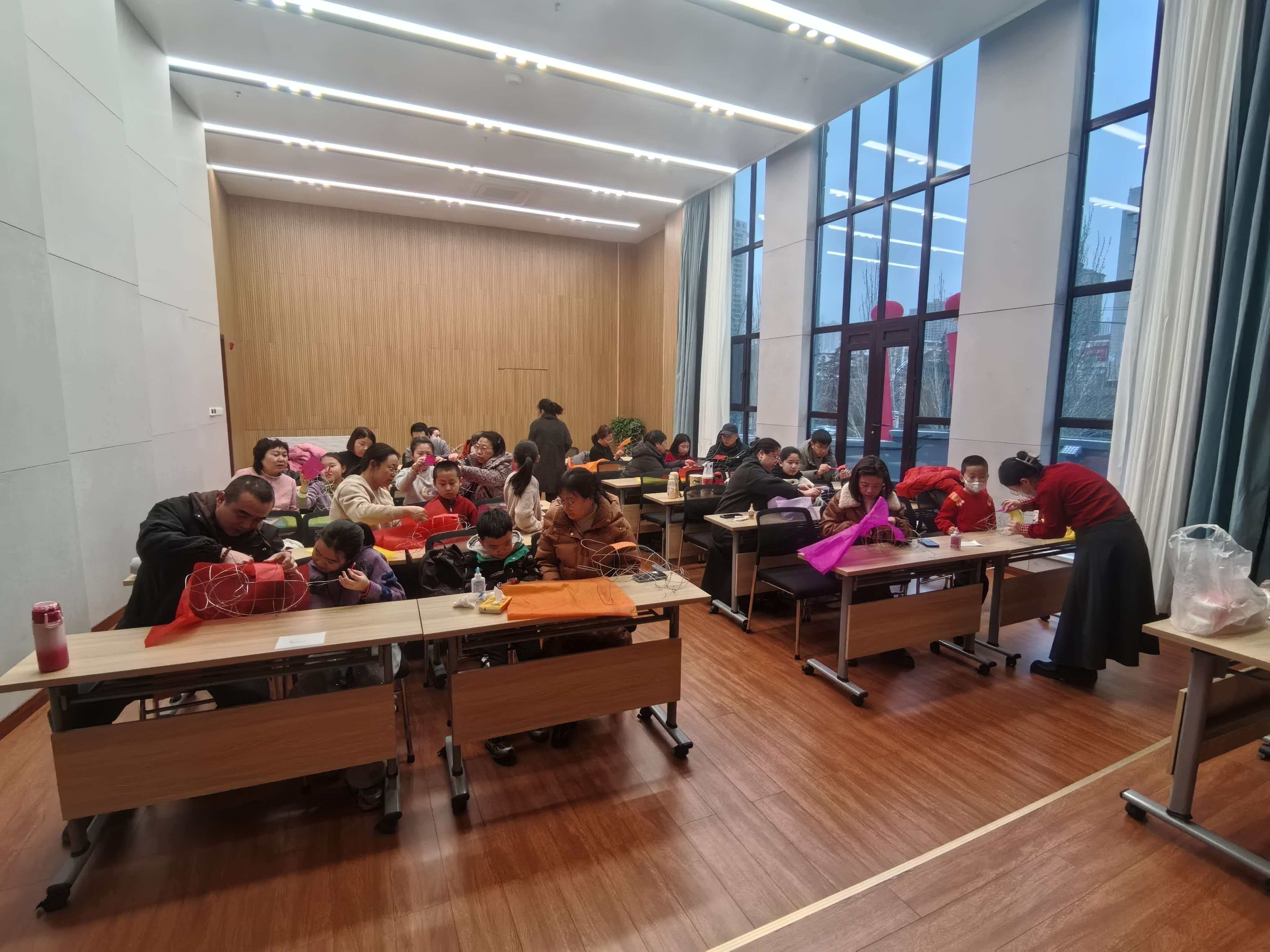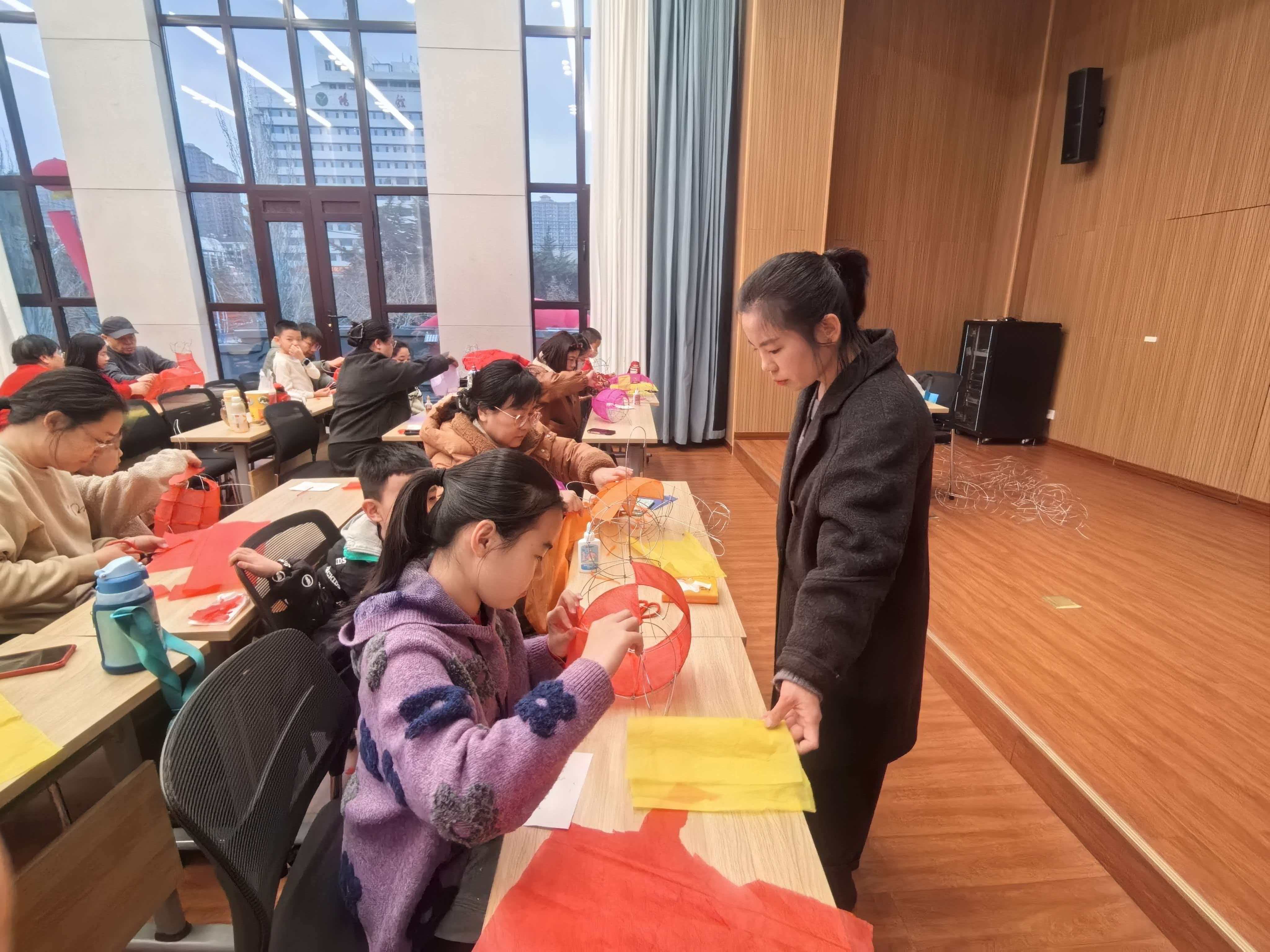 课堂上,史淑惠老师细致讲解、现场示范,手把手传授灯笼制作技艺。家长与孩子默契配合、动手实践,一件件精巧的灯笼作品顺利完成。