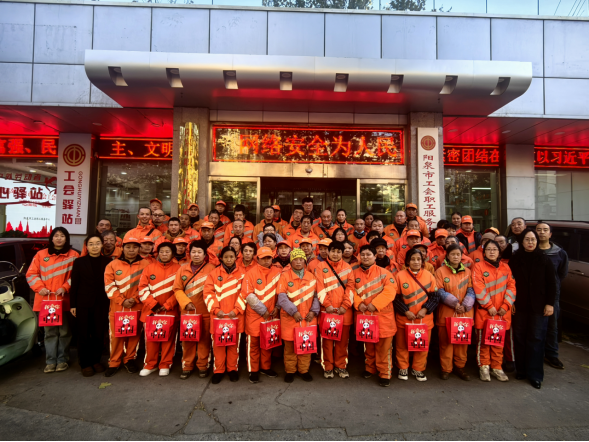 寒意渐浓,关怀暖心。11月19日,市总工会工会驿站开展送温暖活动,为坚守在一线的85名环卫工人送上了保暖手套和护膝等防寒物资,让他们在寒冷的冬季感受到了“娘家人”的温暖与关怀。